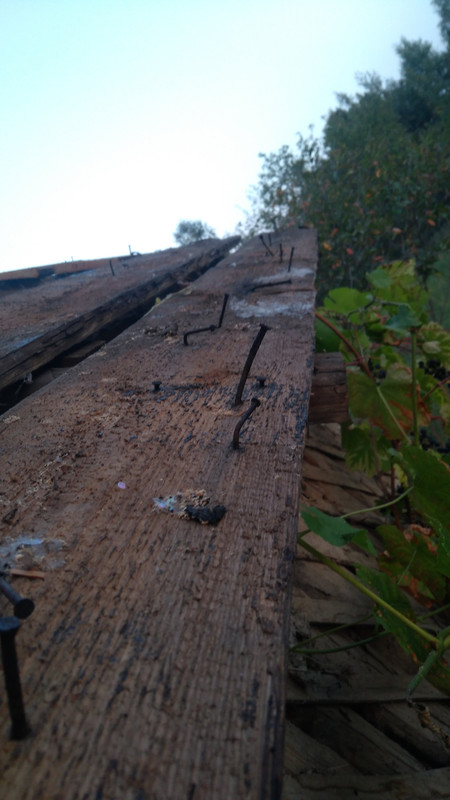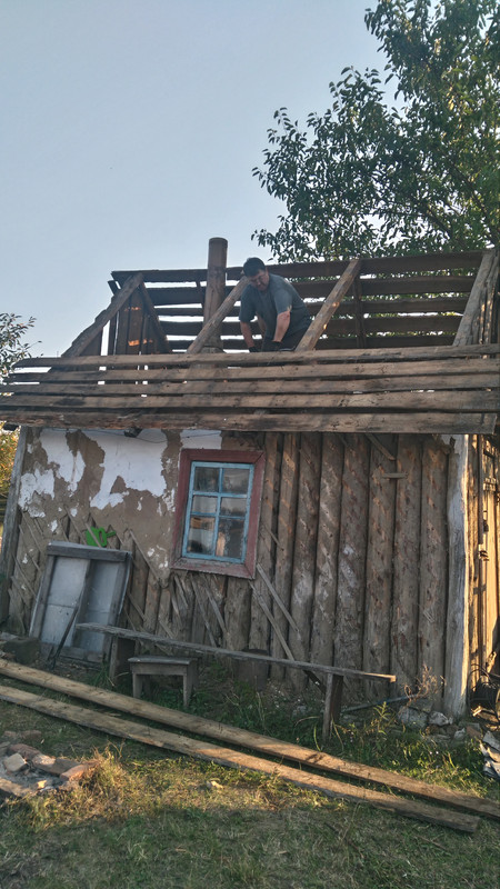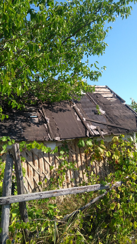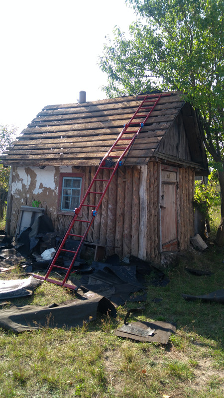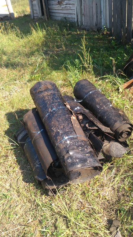 Для начала сняли рубероид. Это было легко. И струна из бутылок пригодилась.