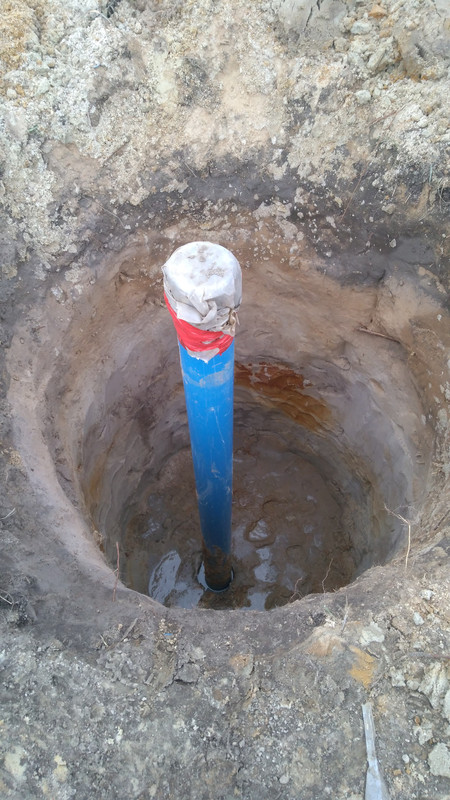 Скважина закончена. Сделан приямок. Я хотел скважинный адаптер, это более прогрессивная и дешевая технология, но в Украине как-то их пока не очень умеют делать. Руку на приямках набили и штампуют их по накатанной. Все в приямках, куда не кинь взгляд.