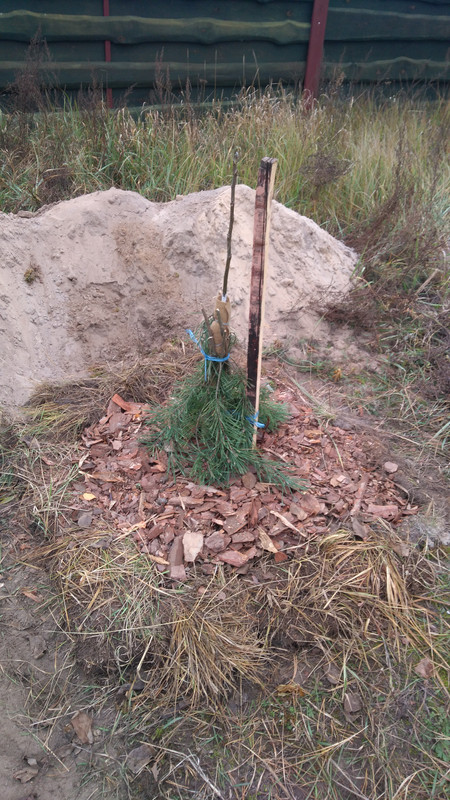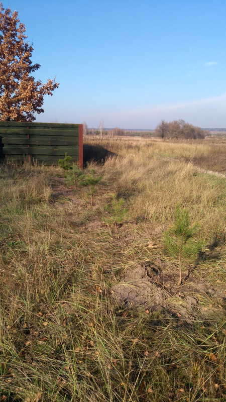 Еще посадили десяток сосенок. За основным участком, на въезде. Типа аллея. Посмотрим, как примутся.
