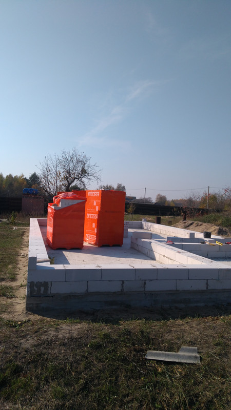 Тем временем, закончили второй ряд. Второй ряд дался трудно – мы переоценили свое мастерство и клали блоки на тонкий слой клея, за что и поплатились. Тонкий слой практически не дает возможности корректировки, блок ни поднять, ни присадить. Временами приходилось снимать, счищать клей и класть по новому. Но справились, в результате.
