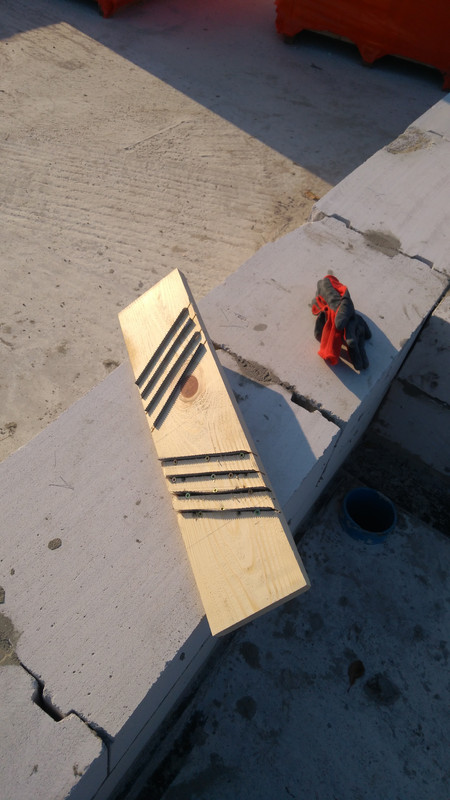 Закончив второй ряд, мы проверили его уровнем и специальной теркой-рубанком вывели его в ноль. Вот такой теркой.