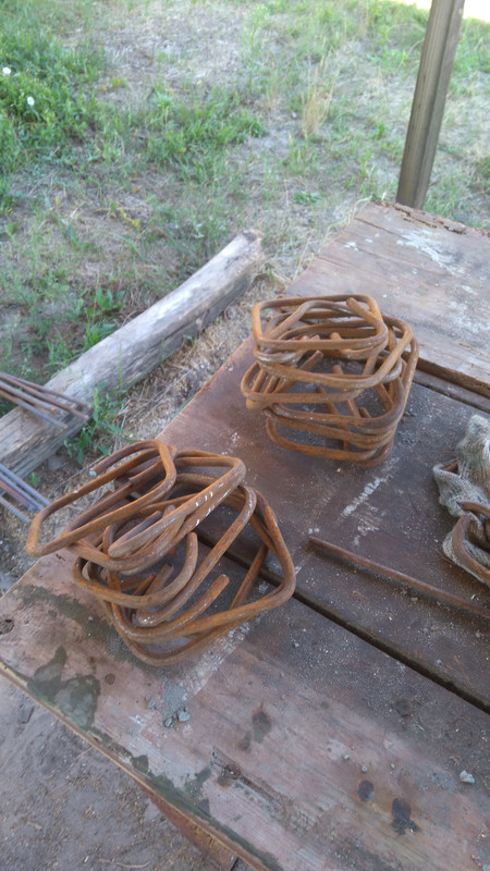 Затем взялись за изготовление армирующего каркаса. Порезать двенадцатую арматуру на правильные прямые куски я смог с первой попытки, а вот с хомутами нас ожидала засада в виде отсутствия опыта. Арматура у нас есть, гибочный станок тоже, горячее желание наделать кучу хомутов – тоже. Но правильно согнуть хомут у нас получилось не сразу и минимум десяток ушел в брак. Но потом мы как-то приспособились и работа закипела.