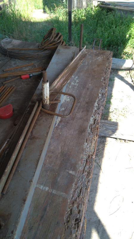 На следующих выходных проверили сделанное ранее – все было в порядке, только арматура припала ржавчиной. Но, как ни странно, это даже хорошо – советские ГОСТы рекомендовали использовать в меру ржавую арматуру для лучшего сцепления с бетоном.