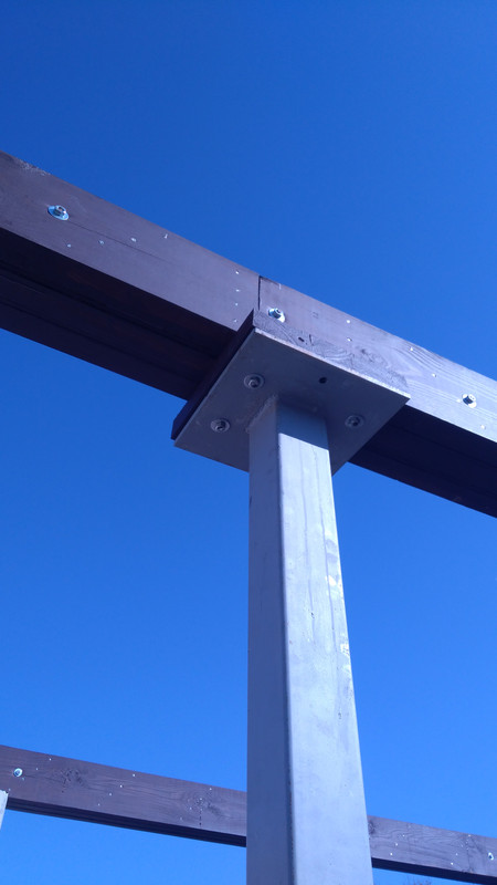 Дополнительно закрепили балки мощными уголками (тоже на анкеры, только поменьше).