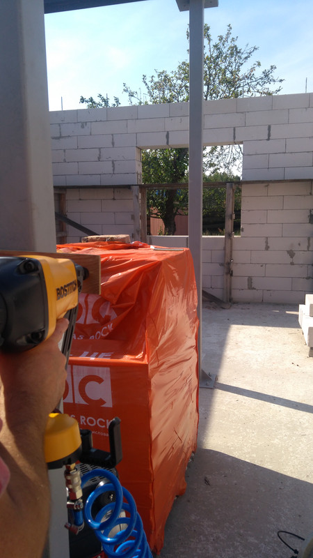 Итак - обманув нехитрым приспособлением предохранительный механизм Бостича, я произвел прицельную серию выстрелов 90-мм гвоздями по опоре лесов. Дистанция - 6 метров 20 сантиметров.