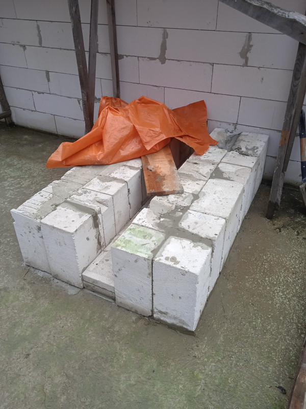 У роботу пішли неліквідні залишки газоблоку (теплоізоляція!), з яких вдалося викласти жахливу конструкцію приблизно прямокутного вигляду.