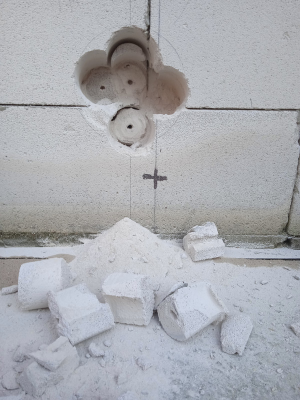 Цією пристособою начорно розширили прохід, а потім нас знову осяяло і в справу пішов садовий бур діаметром якраз 150 мм. Їм ми вирівняли та зачистили стінки тунелю та отримали отвір, близький до ідеалу.