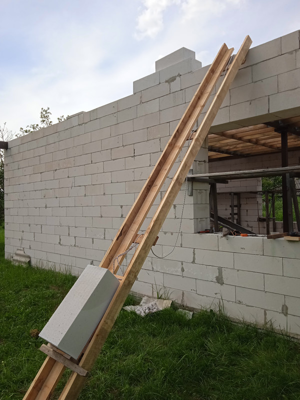 На балки було настелено кілька дошок і зроблен підйомник для трансферу блоків нагору.