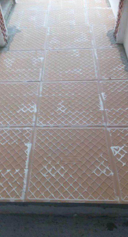 Я не буду слишком строг. У меня есть объяснение. Даже два – либо в доме часто наступает гололедица и высока вероятность травматизма, либо плитка, которую выбрала жена заказчика, настолько уродлива, что рабочие решили внести свои коррективы в эстетику обители. Возможно, хозяева были им даже благодарны. Но это не точно.
