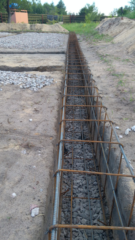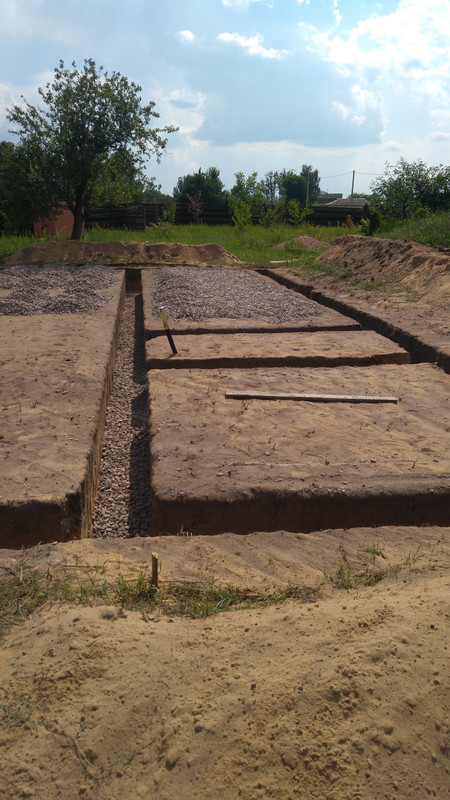 Сначала согласно плану были выкопаны траншеи. Пока они копались, привезли щебень