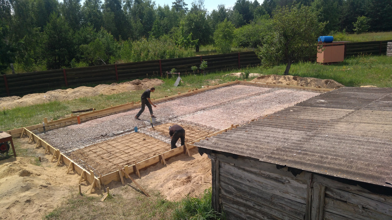 На следующий день была поставлена опалубка, уложена армирующая сетка и подсыпаны сыпучие ингридиенты