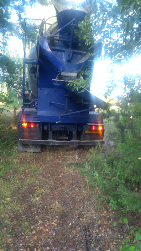 затем приехал миксер с бетоном, в который за руль зачем-то посадили идиота. Верный признак идиота - если ему говорят как надо заезжать, а он решает заехать по своему, то результат немного предсказуем - миксер ожидаемо засел всеми колесами