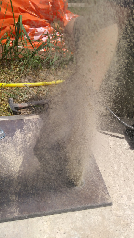 Самое интересное было продувать отверстия. Детская клизмочка справлялась не очень, так что я пару раз дунул ртом. Оказывается, минут десять интенсивного отплевывания прекрасно включают смекалку и я приспособил для этого дела ножной насос. И это дело пошло - фонтаны пыли временами закрывали солнце!