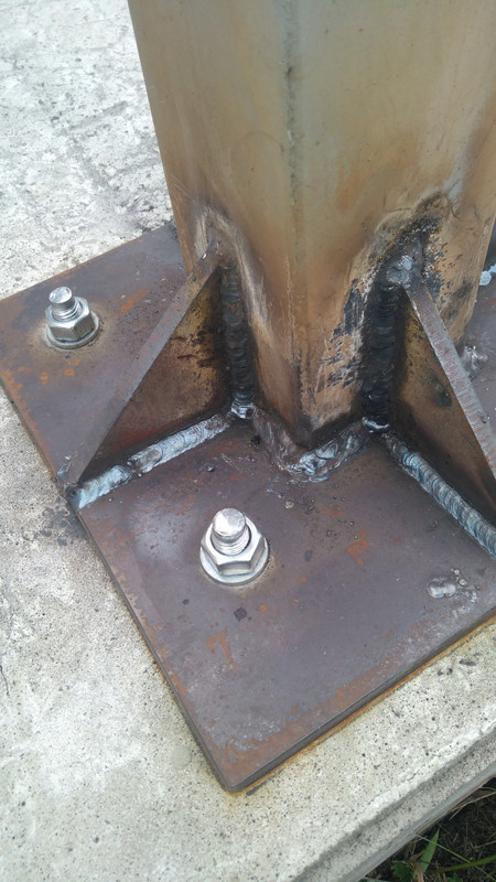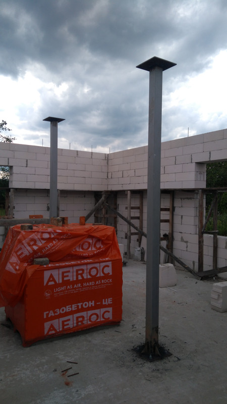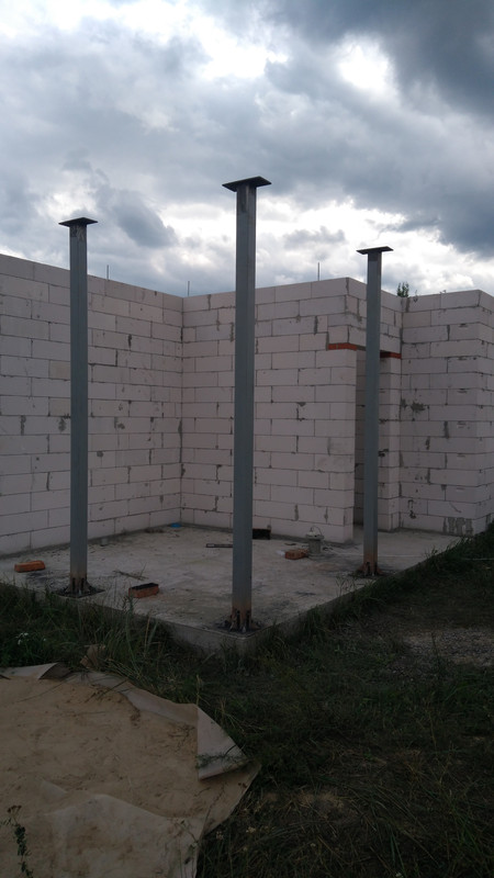 2) Колонны поставили, выставили и приварили. Стоят как зайчики. Три на террасе