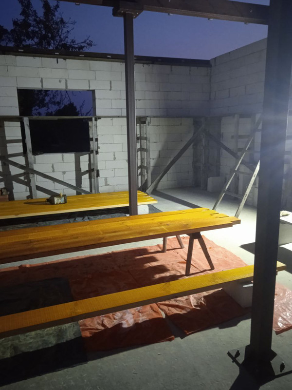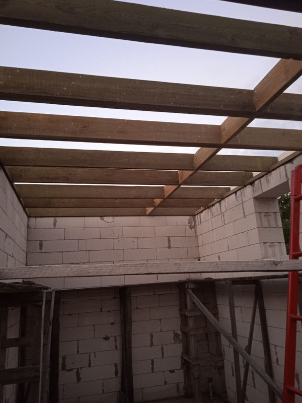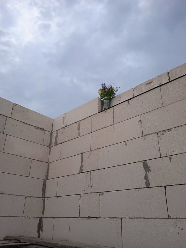 З попереднього звіту минуло більше місяця, і ми за цей час відносно непогано просунулися. Закінчили кладку блоків міжповерхового ряду та ознаменували закінчення цього важливого етапу традиційним букетом.