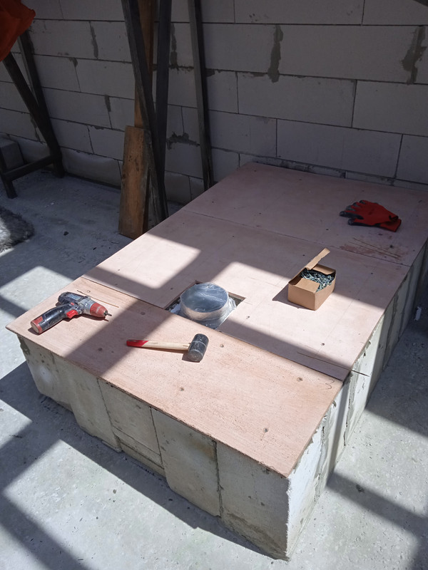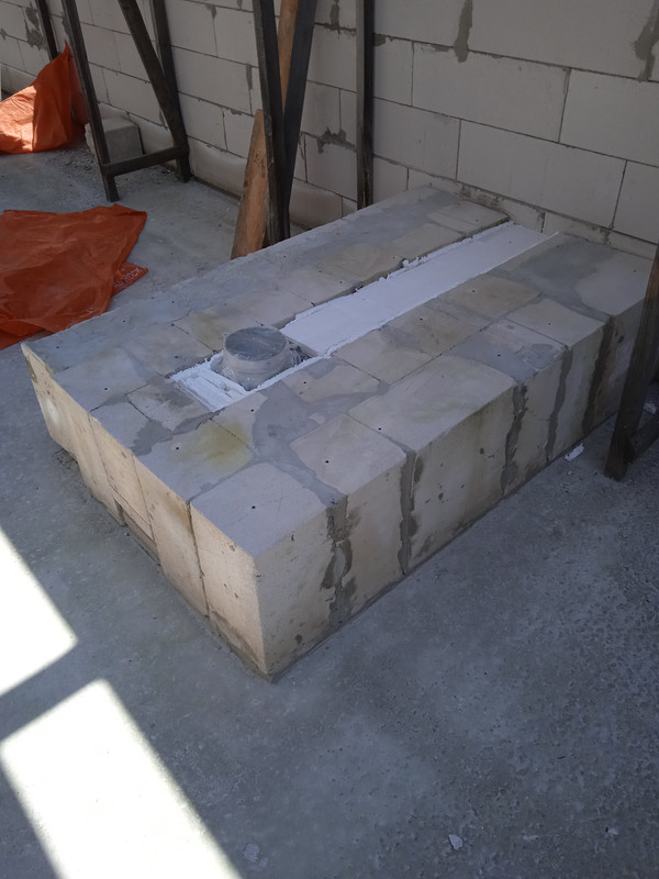 Коротенько нагадаю зміст минулого давнього запису - розпочато кладку фронтонів другого поверху, створено основу фундаменту топки/димоходу.