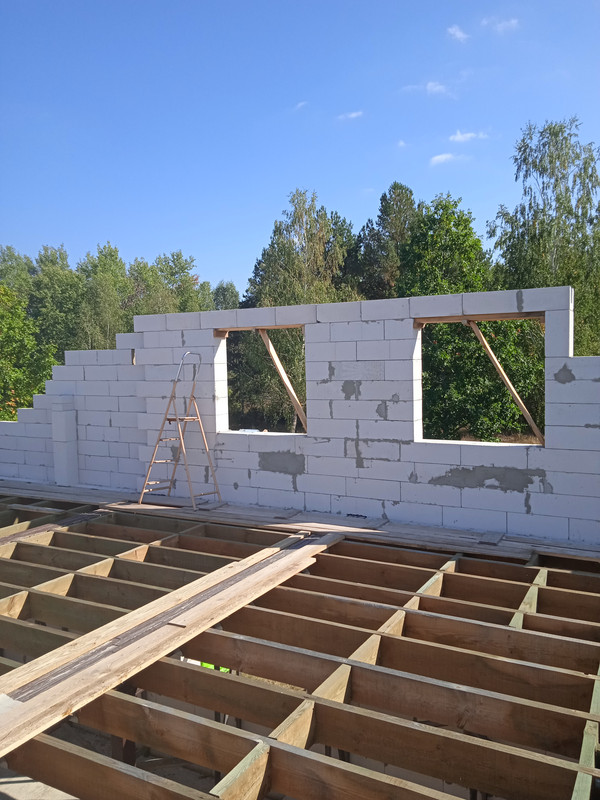 А ось приблизно у квітні на мене зійшло осяяння і ми кардинально змінили концепцію другого поверху та покрівлі. Це складно описати словами, а малюнки проекту я викладати не хочу – надто багато будівельних гігантів моніторять кожне моє рішення. Якщо коротко - у даху з'являється розрив і додається ще два вікна на торцевих стінках другого поверху. Типу мансарда, але не мансарда. Ще немає в сучасній архітектурі терміна для такого дизайну! Але я вигадаю. "Сапсандра", наприклад, чи ще як. Це рішення сильно спрощує конструкцію армопояса і кроквяної системи, але й тягне за собою певний геморой - треба зрізати деякі вже покладені блоки і додати ще дві балки, але воно того варте і ми цим уже зайнялися.